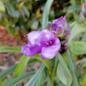 2022/05/03 ムラサキツユクサ 庭で今年最初に開いた子 お昼前・・・まだ太陽がお顔出していました 庭と言っても道路傍 朝日を浴びる位置 特等席に毎年咲きます✌️ 数年前、根を掘ってみたけど深く太く掘れなかった😆 居ても良いよね😉
