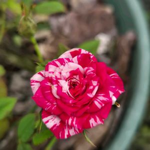 ミニ薔薇「ゼブラ」 10月23日am10:04頃 ✧p📷qω•,,´)パシャ✧ 小さな花のゼブラ、花の大きさ2.5cm程のバラです。 絞り柄で可愛く咲いてくれてます。 部屋でじっとしていると寒いので、昨日からファンヒーターを着けました。 昨日↑16℃↓11℃ 今日↑18℃↓12℃ 真夏から20℃近く下がったんですね。 寒いわけです。 風邪をひかないように気を付けましょう。😃✌️🎶