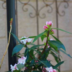 沈丁花 ハクサンのパフュームプリンセス(Perfume Princess) 通常の沈丁花より花と葉が大きく、側芽からも花が咲く品種のようです。 蕾の状態で見たときは、一瞬、シャクナゲの苗かと思ってしまったくらい😅 葉も蕾も大きい~!
