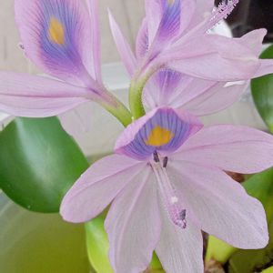 (*ˊᵕˋ*)ノ" こんにちゎー! ホテイ草〈ホテイアオイ〉 今年も次々 咲き始めました➰😊💟 孔雀🦚の羽のようで キレイ〜🪽໒꒱·°˚ ゚ * ・ * この後も ステキな時間を お過ごしください🤗💜˖*