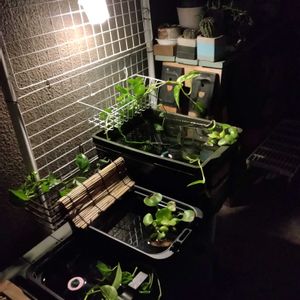 先日メダカがやってきて、ベランダが様変わりしました。京都の厳しい暑さの中ホテイ草や徒長したポトスを飾って楽しんでいます。