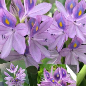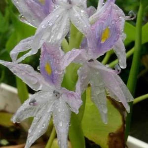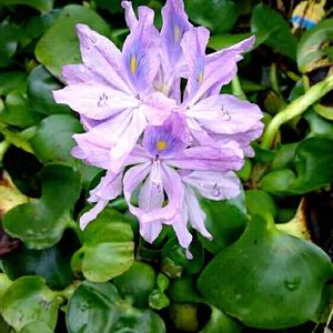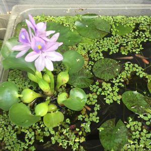 こんにちは😊 白メダカの稚魚が大きく育って来ました😁 メダカや金魚を育てている方なら見慣れた水草 ホテイアオイ、ウォーターヒヤシンスと言う名前もある様デス。 根が長くて黒いんでメダカが卵を産みつけてくれます。 そんな役割を担いながら 思いの外綺麗な花を咲かせてくれたんでパシャリ😆 増えすぎちゃうのがたまに傷😅
