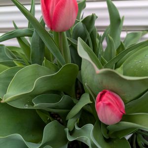 チューリップ🌷が咲きました🫢可愛いい〜💕 でも何故か1輪だけ違う子がいたよ😘 ラッキーだよね✌