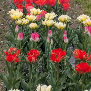 おはようございます😃 1️⃣最後に咲くスイセン😘 2️⃣赤、白チューリップ🌷 3️⃣ムスカリやっと色づきだしたよ🫡 4️⃣いつの間にか冬越していた3種の子は誰でしょうか🤔 ※これから仕事へ🚗🤗 帰ってきたらチューリップ咲いてくれてたらいいなぁ😉💕