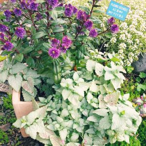 元気な寄せ植え❤️ ラミュウム、ベロニカグレース お花が咲いて来ました💐 ユーフォルビア シルバースワンは✴️に ローダンセダム アフリアンアイズは後ろで小さくなってます