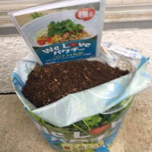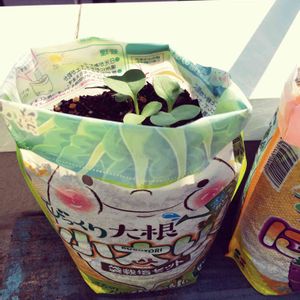 家の屋上テラスでお野菜作り始めました☆ 袋ごと作れるなんて簡単すぎます♡ ちゃんと芽がでますように(*'∀'人)♥︎