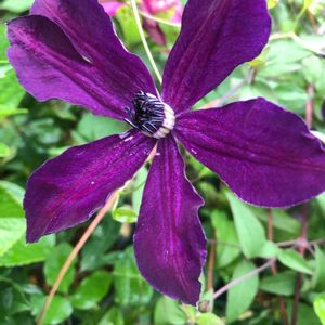 クレマチスビクターヒューゴ 流星の親というか枝変わり前の品種 アフロディーテエレガフミナに似てますけどこちらの方が大きく開き、シベの白が多いですね
