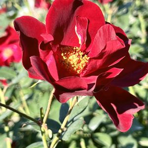 🌹バラ ダスキーメイデン(Dusky Maiden)🌹 FL系統 1947年イギリス🇻🇬 深い赤黒の花びらに黄色の雄しべ❤️🖤💛 半八重の美しい薔薇🌹 🏷️真っ赤な火曜日 🏷️薔薇の香曜日 🏷️可憐な火曜日 🏷️あっ火曜日