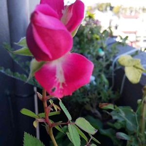 挿し木の薔薇🌹 年に2回咲いてくれます。 何年も前の花束に入っていた🥀を 挿し木にしました。思い出の薔薇です。 切り花用だから、茎が長くのびて、 飾りやすい。 でも、いつも✂️する時を迷います。 今年は植え替えをしてあげたいな…… 🏷真っ赤な火曜日 🏷薔薇の香曜日