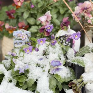 ラピスラズリとよくばりプンクの寄せ植え🌱 こちらは昨日の朝のpicです☃️ 今朝はもっと積もっています😅 今日は用があり仕事は休んだけど行けるのか…❄️ 花屋さんも行きたかったけど…この雪では…断念します🥶