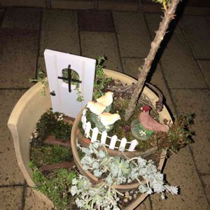 はじめて… ニワトリ🐓さん&ヒヨコ🐥ちゃんのお家🏠を作ってみました! 材料費は、100キンで4点の飾りを買っただけやからな… 後は皆、貰い物… ╰(*´︶`*)╯♡