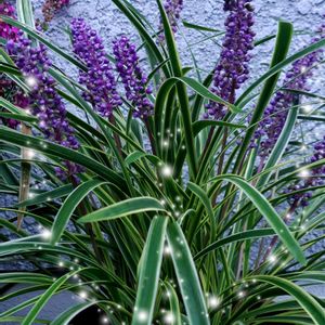 連投失礼します🙏🎶 チーム・ブルーの花友さんのキリ番お祝いになります💙💜 ㊗️羽花さん2600picおめでとうございます~🥰🎊💐🍀🎉👏 玄関先で咲いてる「斑入りヤブラン」で、お祝いさせて貰いますね~(*´∀`)♪💖 ②枚目…庭で咲いてる「サルビア・ガラニチカ」にホシホウチャク❔🤔が、今日も2匹世話しなくお食事してました🤭 🏷️お祝いpic 🏷️彩月(いろどりづき)の青い花2025 🏷️(祝)チーム・ブルー60000pic 🏷️愛の花♡ に参加させて貰いますね~🥰💙💜💚