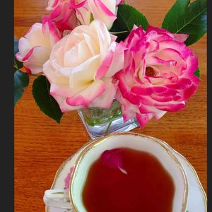 「薔薇の館🌹」で頂くローズティー☕️ ✨😌至福のひととき😌✨ いつも貸し切りにして頂きますが、門扉の外では、たくさんの人が写真を撮っておられました🙏 🌹の育種家の亀山先生と🎳のメンバーで、毎年目の保養とおもてなしでパワーを頂きました💃🏻🎶 今年は、秋の🌹ではなく紅葉🍁の庭を見学させてもらうみたいなので、又楽しみが出来ました🤗