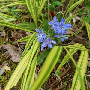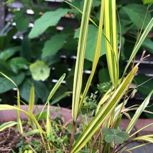 笹みたいだけど、よく分かりません。涼しげでいい色です。 斑入り風知草と教えて頂きました!有難うございます。