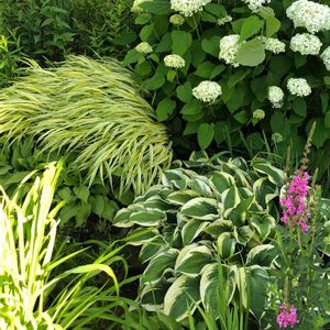 今、一番爽やかな色合いの庭の一場面、さし色の『禊萩』咲いて、癒し効果が増しました☺️