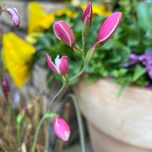 ヘスペランサ ククラータピンクに出逢ってしまいました😄 南アフリカ原産の球根植物で、アヤメ科の植物です。 蕾は結構濃いピンク色💕 開いたお花は真っ白です😁 球根だから年々増えてくれることを期待してます🤗