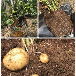 袋栽培の じゃがいも 葉っぱが黄色くなってきたので、 袋を チョキチョキ✂️ あれ?あれれ? こんだけ〜?