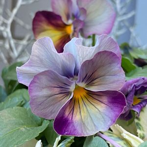 花によって顔付きも違う、ニュアンスカラーのビオラ💜 一言で説明できない複雑な色合いのものが好きかも💕💕