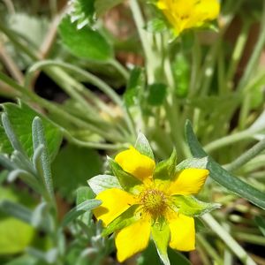 ポテンティラ ゴールデンスターリット💛 昨日upした蕾…咲きました〜✨😄 💛っぽい花びらがぽわっと開いた感じ✨ 隙間から萼の緑も見えてます🍀 可愛いお花でウレシイ.。*♡(◍•ᴗ•◍)✧✨*。