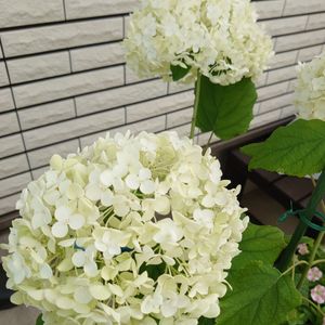 挿し木苗のアナベル こちらは白からライムグリーンに変化してきました🤗