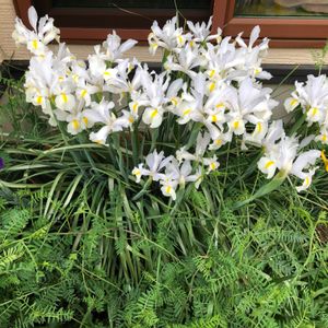 おはようございます☁ 今日は、昨日と比べて-10度 肌寒いです🥶 若干カオスな花壇 白のダッチアイリスが花盛り🤍 奥に、紫💜の花 手前に、黄色💛の蕾があります 今日が皆様にとって良い日になりますように❤
