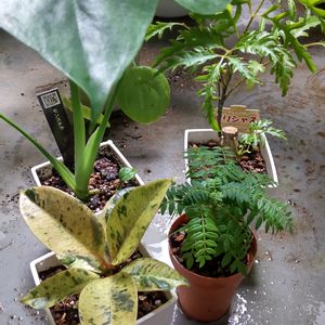 冬越しフィカス達放出です。 おかしいなぁ、もっときれいに並ぶはずだったのに絡み合っちゃってる( ´▿` ;) パンダガジュマル🐼 先っちょだけ新葉が出て…途中から葉っぱ出てこなかったらチョンパしちゃうぞ~チョキ( ✂︎'-' )✂︎チョキ しばらく様子見。 あとは斑入りガジュマルとシタシオンがちょっと葉を落としたけど私としては許容範囲内。 葉っぱ大きい系は案外キープできました♫