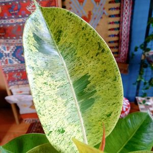 バイトに来てくれている人に貰いました。 散り斑のゴムの木。 フィカスジンて名前みたい。 レンズが曇っていて、イマイチな写り。 すみませんでした。m(_ _)m