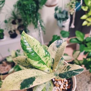 以前枯らしてしまったフィカス・ジン。 挿し木株なのかな?めちゃお安く並んでたんでお迎えしました。 葉っぱの模様が好き。