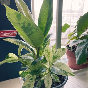 フィカス ジン GSの他の方の投稿を見て刺激を受けましたꉂ🤣𐤔 他のお二方は外管理されているみたいで、 写真を見ても斑の入り方が綺麗( ³ᗜ³ )ᐝ ウチのジン様も綺麗なのですが、 室内管理のせいか、少しづつ緑部分が 多くなってきてます😳 ま、これはこれで綺麗なんですけどꉂ🤣𐤔 成長はゆっくりめですが 大きくなって欲しいなぁ(*>人<)タノムゼ