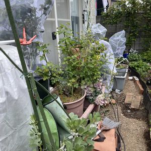 バラゾウムシや鳥獣などの被害を防ぐために網を被せました。これで少しは被害が減らせるかな? 次はイチゴの花に被せなくちゃ‼️