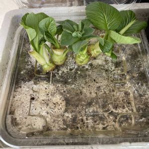 小松菜の根を切って水につけて置いたら、葉が出てきた。 少しだけど、味噌汁のちょっとした青味に使えるかな? 生命の不思議。 再生にはまるこの頃!!