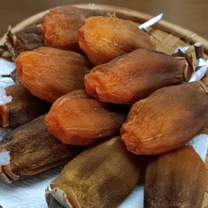 柿 カキ 干し柿 先日の頂いた渋柿が ようやく美味しい 「干し柿」として 完成しました。 とても優しく甘く 出来上がりました。 持参してくれた友に 感謝しつつ頂きたいと 思います。 🙏🙏🙏🤗🤗🤗