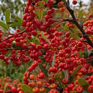 今日の花ピラカンサ♡ ポカポカ陽気の青空のした真っ赤な実が輝いていました 🌟¸¸🎶✨🎼