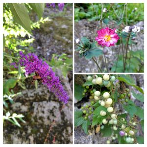 連投ですみません😅 散歩道🐕🦺 ガマズミ、ヨウシュヤマゴボウ他 摘んできた秋の実りに お庭の花を+して玄関に… ようやく切り花の花持ちも良くなって来たので😉 午後からも穏やかな時間が流れますように🫖🍀