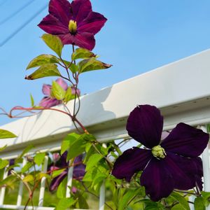今日は青空☀️ 爽やかなお天気てす。 クレマチス エトワールバイオレットが花ざかりになりました😄💕