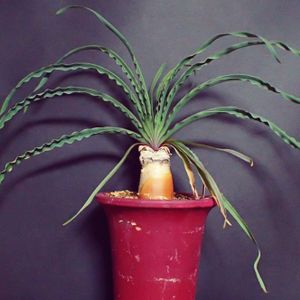 ブーファン・デイスティカ。 重厚な塊根から扇状に伸びるウェーブした葉が美しい。 今生きている葉の下には枯葉が幾重にも折り重なったまま残っていて、それもまた美しい。 塊根部分は古い皮が分厚い層になっていて、これが暑さ寒さから守ってくれるのだとか。 自然の造形は凄い。