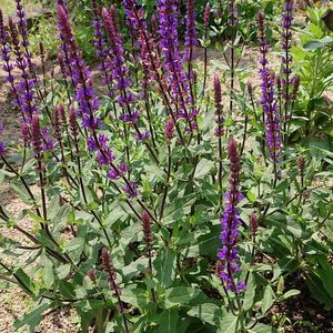 🌺サルビアネモローサ 今年の2月に移植した20年超えのバラの株元で咲いています。