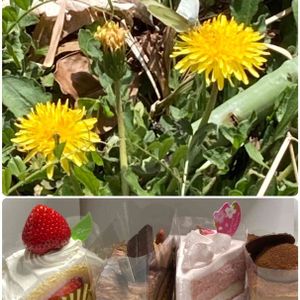 畑のタンポポのお花にモンシロチョウさんがとまっていました。 結婚記念日なのでカットケーキを買ってきました。 🐨が食べる予定のケーキはどれでしょうか⁉️ 全部ではありませんよ❗️