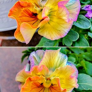 おはようございます😊 今日はまた 寒さが戻ります☃⋆。 フリル咲きパンジー 〈シエルブリエ〉 一回の✂️ピンチから 数個の花が咲いて きました 最初は淡い黄色から… 咲き進むにつれて徐々に色が変わり始め… なんと!! 念願の虹のような花色になってきて やったー⁽⁽٩(◍˃ᗜ˂◍)۶⁾⁾🥳 日の当たり具合や 気温によっても変わる みたいです。 本当に このブリエさんの 色の変化には 感動🥹とワクワクが とまりません (⸝⸝˃ ᵕ ˂⸝⸝)ゎ‹ゎ‹𓂃𓈒♡" 🧡🌈*.。.*゚🧡🌈 今日も 暖かくして Happyな一日を お過ごしください☺️🌈