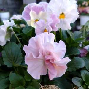 (*ˊᵕˋ*)ノ" こんにちは☁ フリル咲きパンジー 〈シエルブリエ〉 お迎えから1週間 次々と蕾が付き 咲き始めました♡ 真っ白だったのに 薄っすらと 淡いピンク色に なってきて…カワイイ♡ 🤍・。❀。・゚🤍・。❀。・゚ .・*:♡:*・今日もHappyな 1日を…・*:♡:*・.♪