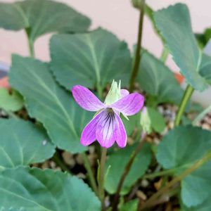 桃花コスミレの名で流通しているが、ラベル裏面の説明によるとコスミレとリュウキュウコスミレの交配種とのこと。 リュウキュウコスミレはコスミレの亜種ではなく、ノジスミレの亜種なのがこれまたややこしい。 コスミレとノジスミレの雑種にはミハシスミレという名前があるので、本種はミハシスミレの親戚筋ということになる? 雑種なので稔性があるのかは不明だが(ミハシスミレは稔性ありとのこと)、植え付け時に切り取った根を根伏せしてみたところ5株くらい葉が出てきたのでバックアップには問題なさそう。