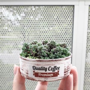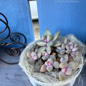 確か、去年の秋に、 グリーンセンターで徒長した苗を手にして落としてしまい、「買います😅」と言ってお連れした桜ボタンの苗 茎をチョッキンして、 葉っぱの小さなものは、このシーチキン缶に入れといた。 1年経ってもこの大きさ。 だけど可愛くピンクに紅葉🍁 チョッキンした子は、 明日投稿します。 可愛くなったよ💕