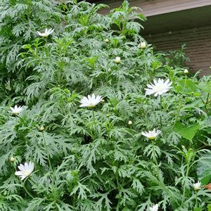 1日、雨☔。 小さい庭に、このマーガレットが陣取ってくれています。1m幅くらいに、ワサワサに成長してきてびっくり😣 挿し枝1本から、こんな事に💦 根元の茎は、太く木質化。花が終わったら剪定確実です👍!ʕ•ﻌ•ʔฅ´-