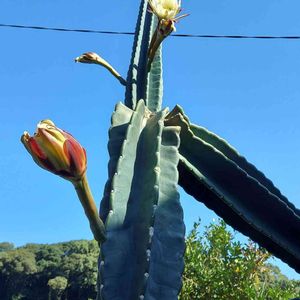 昨年、11月に、愛犬との散歩道にて、遭遇し、パチリ📸した1枚です。 散歩コースのひとつにて、空き家の庭に、見上げる高さに育つサボテン🌵でした〜 それがこの日、花🌼が咲いていて驚いたんでした! デカイだけじゃー無いんだよね😉👍