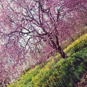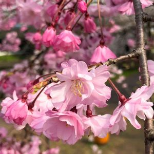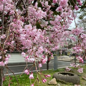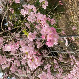 昨日は雨でしたが、可愛い枝垂れ桜に出会いました🌸ピンクがソメイヨシノより濃くてヒラヒラで可愛かったです😍写真は枝垂れ感全くありませんが😅調べたら八重紅枝垂だと思うのですが。。違ったら教えてくださいね❣️