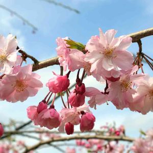 ヤエベニシダレ(八重紅枝垂)はエドヒガン(江戸彼岸)から誕生した日本原産の栽培品種です。 蕾から始まり5分〜7分咲の頃は濃紅色で更に咲き進むと淡紅色に変わっていきます。 通常 八重咲きは雄蕊や雌蕊が花びらに変化するため、雄蕊・雌蕊は少ないことが多いですが、八重紅枝垂の場合は雄蕊・雌蕊の数に変わりはありません。 明治時代に仙台市長を務めた遠藤庸治氏がこの桜の普及に努めたことから"遠藤桜"とか"仙台小桜"とか"仙台八重枝垂"などの別名があります。 日本原産。 バラ科サクラ属の落葉高木。
