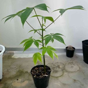沖縄は、梅雨明けして夏がやって来ましたよ🌞🏖 トックリキワタの実の綿の中にあった種を お母さんに育てて頂いて、芽が出てきた❗ と喜んでいました😊 地植えにすると大きな木になるので、鉢植えで育てるそうです😅