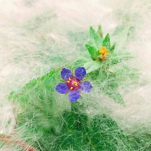 おはようございます! トックリキワタの綿が地面にフワフワと漂ってまるで雪が積もっているようです❄❄❄ ルリハコベ💙💙雪の中から顔を出しています💙💙なんて(o^^o)