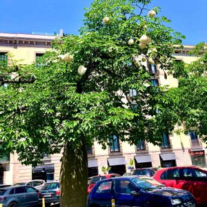 トックリキワタ: この木のお花をさっきGSで見て お花が見たくなりました。 ピンク色の大きなお花みたいです。 この丸いのが割れて綿毛みたいなのが出てくるらしいです。 ちょうど私が見た時は上の方に1つ割れかけがありました。 (2022年4月4日 宮崎崎県市役所)