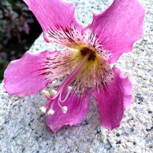 9月末に投稿したトックリキワタの花がまだまだ咲いてます🌸散る時は花びらがバラバラになってしまう事が多いのだけど、今日はお花の形で落ちてるのを発見👀👀 ピンク可愛い〜💕💕💕✨✨
